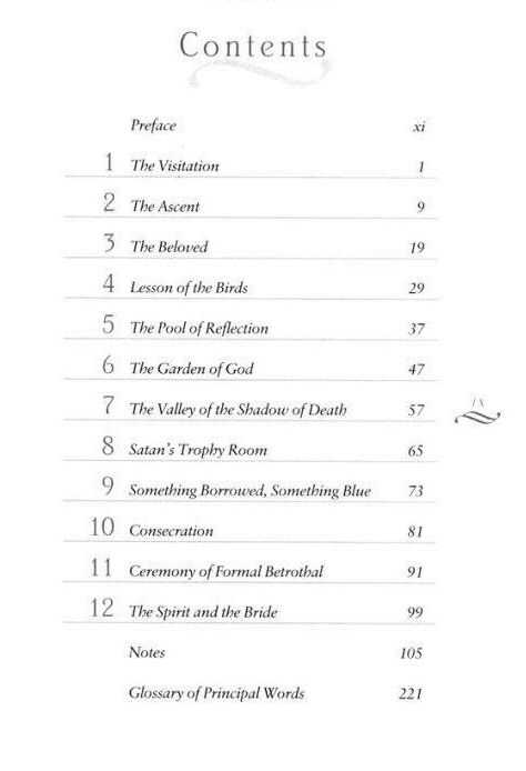 He continued, "This time will pass swiftly. We want you to treasure all of it. Courtship is a memorable time, a suspended time. It is a time when lovers walk hand in hand, a time of growing in knowledge and understanding concerning the other. The time of courtship on earth is sweet. But you, Anna, are in a courtship with My Son, the Prince, none more perfect and beautiful, none more powerful and glorious--My Son. Abandon yourself to the experience of the time."